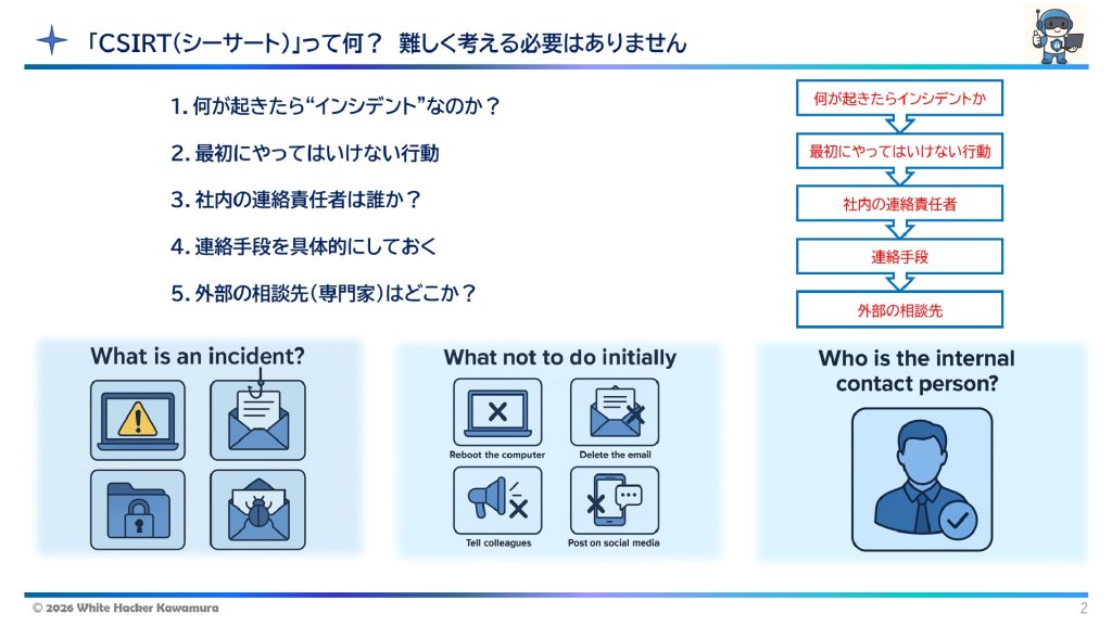 『中小企業向け10分CSIRT入門』「CSIRT(シーサート)」って何? 難しく考えることはありません。